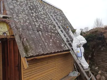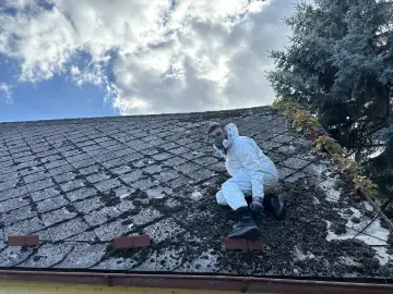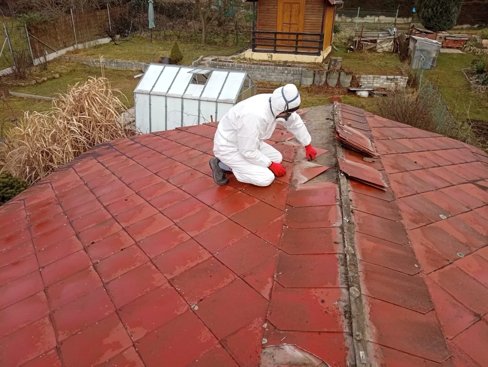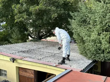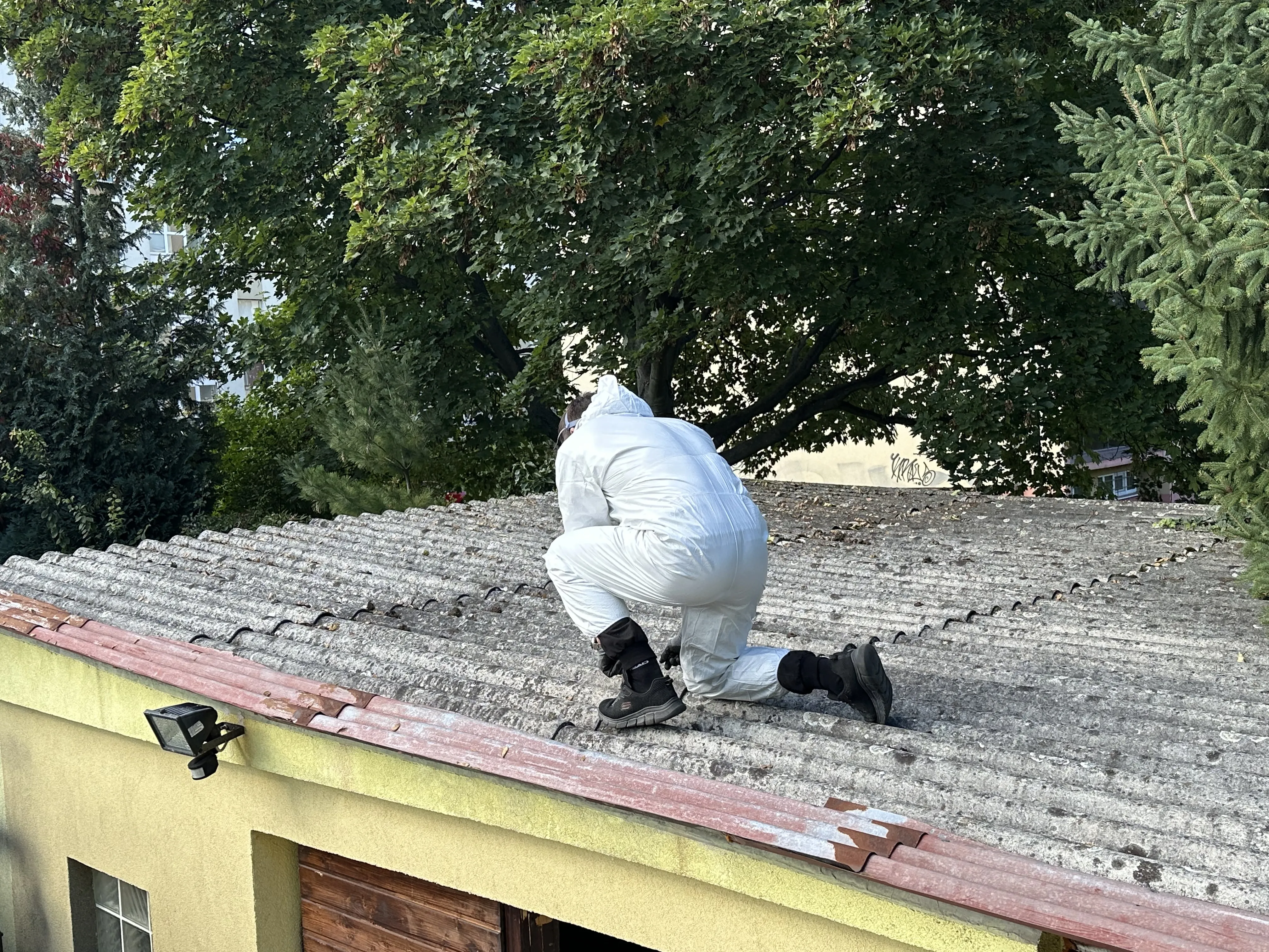 Na fotografiích můžete vidět postup odstraňování azbestu, manipulace s materiálem i bezpečný odvoz k ekologické likvidaci.